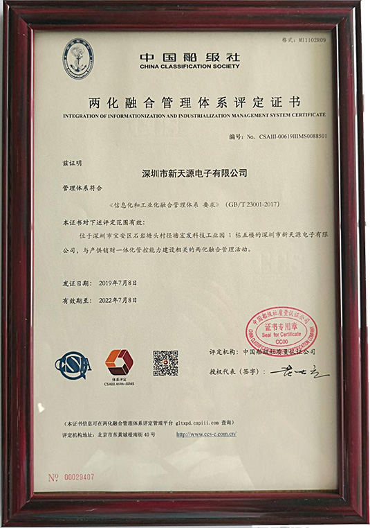 两化融合管理体系评定证书